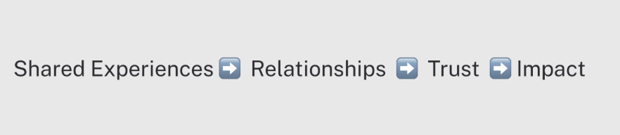 You need trust to make an impact on your audience. Trust is built through relationships. And relationships are cultivated by connecting with people through shared experiences.